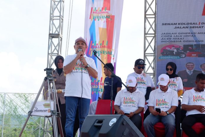 Senam Kolosal Meriahkan Millennial Road Safety Festival di Jantho Sport Center