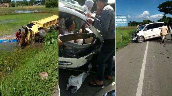 Mobil Toyota jenis avanza BL 1807 ZM tabrakan dengan mobil truk Hercules BL 8297 LJ di jalan raya Nasional Banda Aceh- Medan persisnya Desa Meunasah Tuha Kecamatan Suka Makmur, Aceh Besar, Minggu (17/11/2019) sekitar pukul 10.15 WIB.
