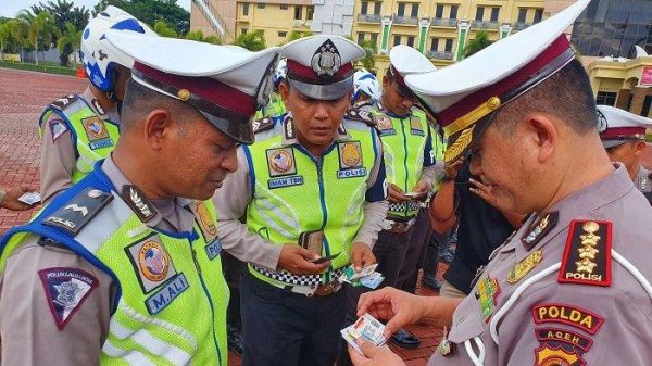 Kombes Dicky juga menyampaikan arahan-arahan bagi para anggota untuk terus bekerja menertibkan lalu lintas di Aceh.